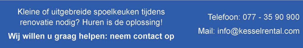 Kessel Rental heeft spoelcontainers in het verhuurprogramma zodat u gedurende de renovatie zelf de afwas kunt blijven doen en de maaltijd verstrekking aan uw gasten of patiënten gewaarborgd is.