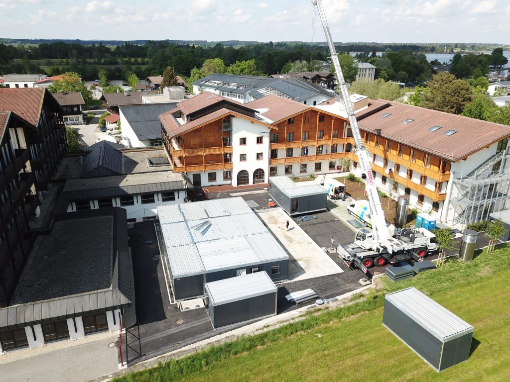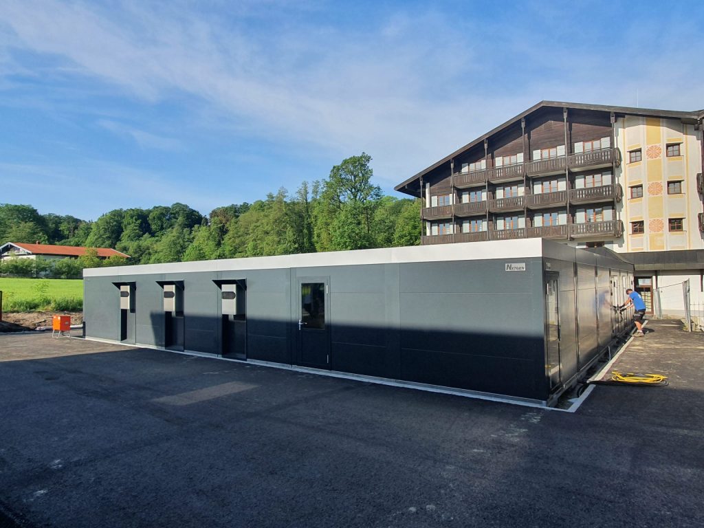 Voor de Schön Klinik in Prien (DE), mochten wij in juni 2022 een tijdelijke keuken leveren voor een geplande huurperiode van 26 weken. Hiermee blijft de maaltijdvoorziening voor patiënten en medewerkers gedurende renovatie van de eigen productiekeuken gegarandeerd. De tijdelijke voorziening betreft een naar wens ingerichte containeroplossing uit totaal 18 units.