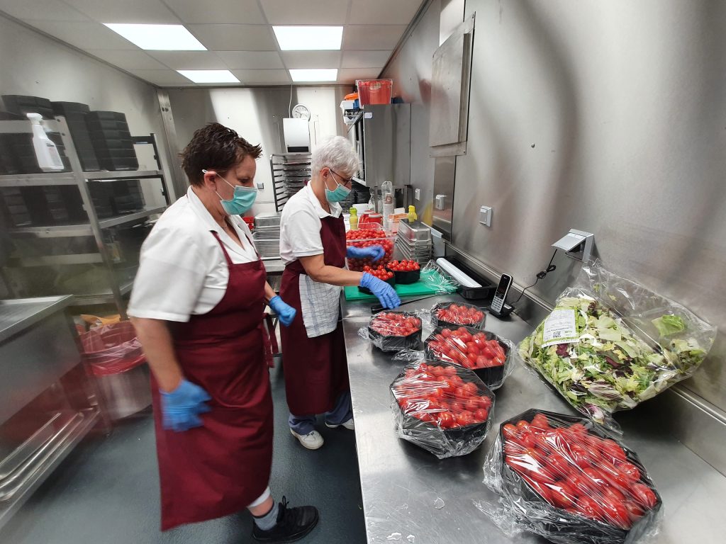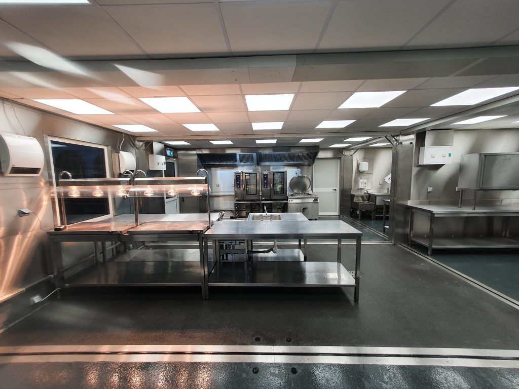 Geïntegreerd zijn o.a. een warme keuken, spoelkeuken, koude keuken en diverse andere (gekoelde) ruimtes. Alle technische faciliteiten zoals afzuigkappen, elektra en waterverdeling zijn voorbereid, zodat de klant ook eigen keukenapparaten kan inzetten. De verdere inrichting met onder meer werk- en spoeltafels, maakt de tijdelijke voorziening compleet.